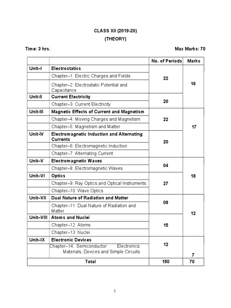 1 from There are no chapters that have been newly added or exempted from the existing syllabus. Cbse syllabus for class 12th physics. Whether you want to start your own business or aspire to make career in bank, finance fields or as a chartered accountant, if you have interest in accountancy subject, you can easily make your career goals fulfilled by choosing this stream. Free download class 12 cbse all in one physics. And a total of 150 periods are assigned for physics subject. Students should follow this and prepare according to it for the exams. Mycbseguide provides you latest cbse syllabus for class 12 informatics practices in pdf format. Cbse question paper class 12 are provided below for physics.