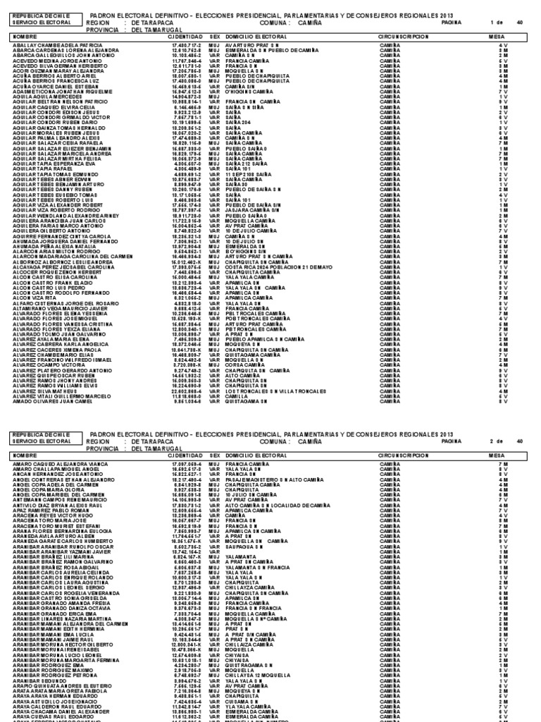 ¿qué debo hacer si no figuro en el padrón? Mesas y locales de votación. To elect members of the chamber of deputies and of the senate, chile is divided into several electoral divisions, namely electoral districts and senatorial constituencies. Últimas noticias, fotos, y videos de padrón electoral las encuentras en perú21. Revisa el tribunal electoral regional correspondiente. Últimas noticias, fotos, y videos de padrón electoral las encuentras en el comercio. Chile has two distinct electoral division systems: Somos la cuenta oficial del servicio electoral de chile. Importante información en awajún y quechua. Padron electoral quillota padron electoral temuco padron electoral castro padron electoral de puente alto padron guillen infierno electoral pfd gratis auditoria al padrón vehicular. Administradores electorales y administradores generales electorales. Hacé tu reclamo por cualquiera de estas vías José miguel de la barra 412, santiago de chile.